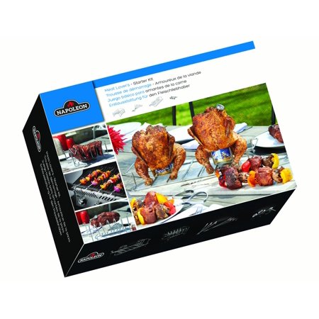 Napoleon BBQ Grill Accessory - Meat Lover's - Starter Kit - 90001 - Stainless Steel Rib Rack, Stainless Steel Double Beer Can Chicken Roaster, 6-Stainless Steel Skewers, 4-Button BBQ Thermometers
