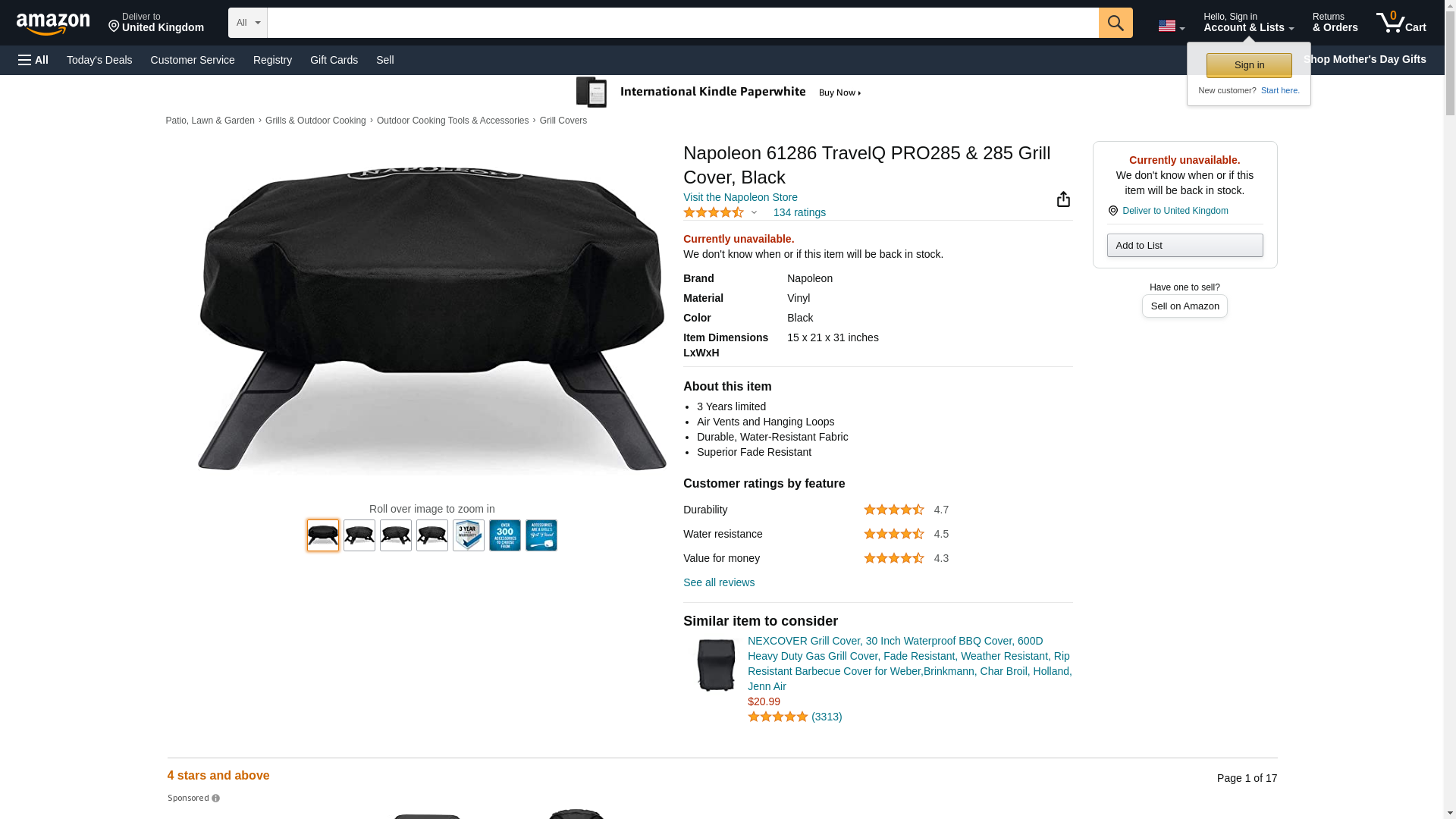 Napoleon 61286 TravelQ PRO285 & 285 Grill Cover, Black