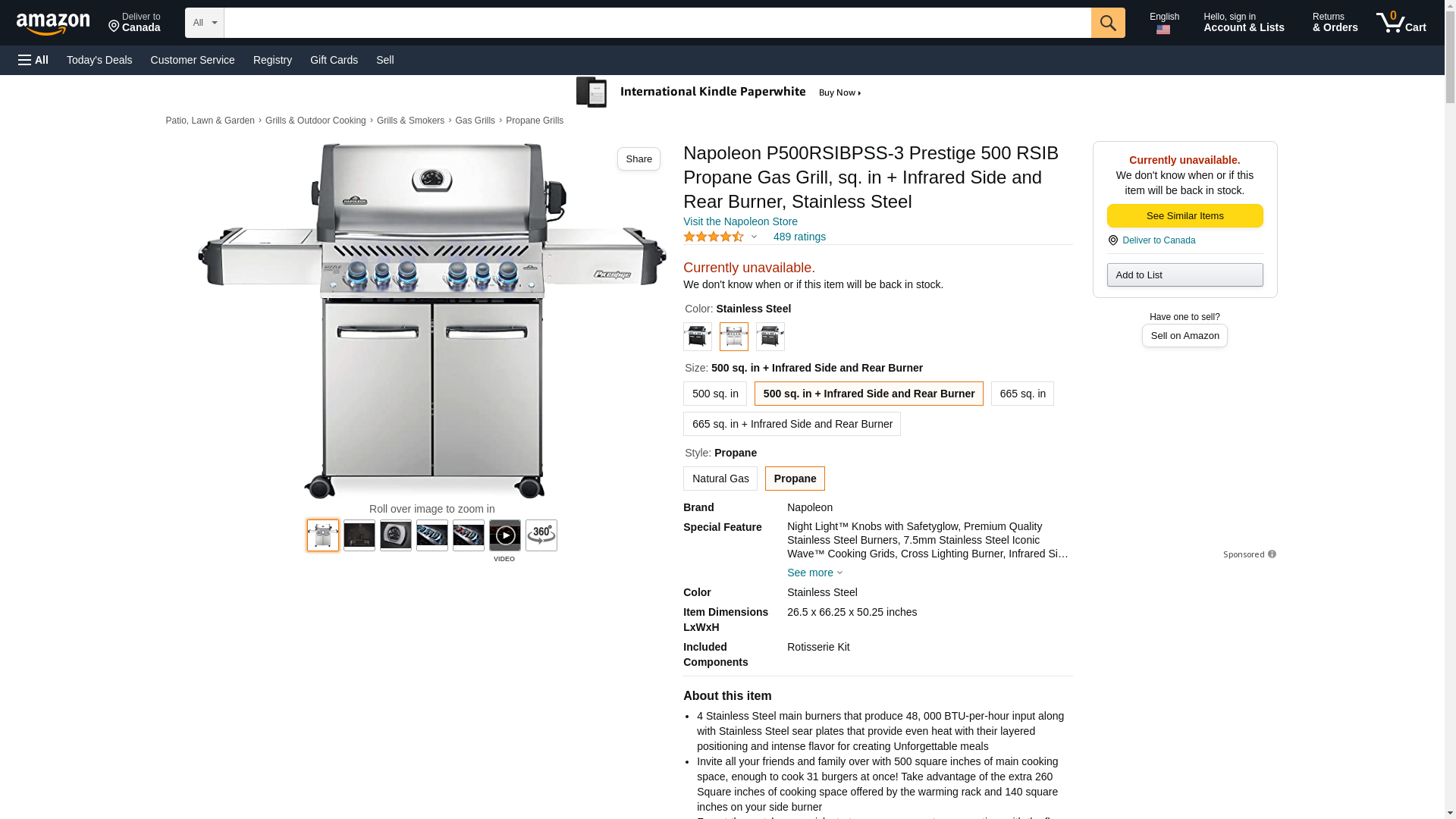 Napoleon P500RSIBPSS-3 Prestige 500 RSIB Propane Gas Grill, sq. in + Infrared Side and Rear Burner, Stainless Steel