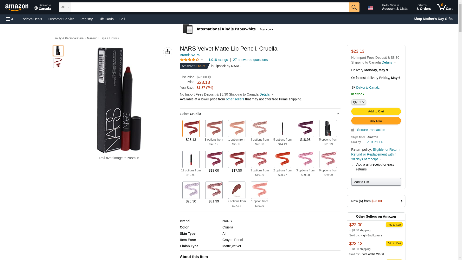 NARS Velvet Matte Lip Pencil Cosmetics Cruella