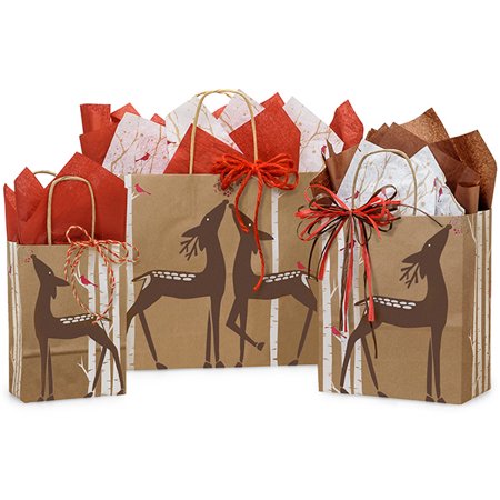 <ul> <li>125 Woodland Deer Assortment 50 Rose, 50 Cub & 25 Vogue Bags</li> <li>Recycled Woodland Deer shopping bags are made from 100% recycled kraft paper and carry the Green Way? logo. Bags contain a minimum off 40% post-consumer recycled content and are 100% recyclable. Bags are available in bulk cartons, mini packs or an assortment. Made in the USA Description:125 Woodland Deer Assortment50 Rose, 50 Cub & 25 Vogue Bags. Made in the USA.</li> </ul>