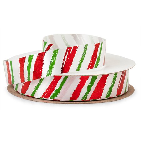 <ul> <li>Make a statement with these printed or hot stamped ribbons! Choose from printed poly or hot stamped high gloss ribbons. Printed with water based inks on a large 50 yard roll. Made in the USA!</li> <li>Dimensions and weights subject to modest variance. White 100% Polypropylene ribbon with metallic red stripe and water based green stripe.</li> </ul>