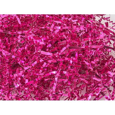 <ul> <li>Crinkle Cut? Paper Shreds are available in 10 lb. boxes and expand in volume. AKA "Spring Fill" or "Zig Fill". This filler is highly recommended for medium to heavy weight items. Available in solid colors, multi-color and metallic blends. Each shred is approximately 1/8" wide. Great for baskets, basket boxes, bags, containers and nested boxes. Use shred with our gift basket benches for additional support. Made in the USA.</li> <li>Dimensions and weights subject to modest variance. Metallic Fuchsia Crinkle Cut? Shred (Zig Fill) is perfect for adding shimmer to any arrangement! Actual shred size is 1/8". Shred is made of metallized film laminated to paper.</li> </ul>