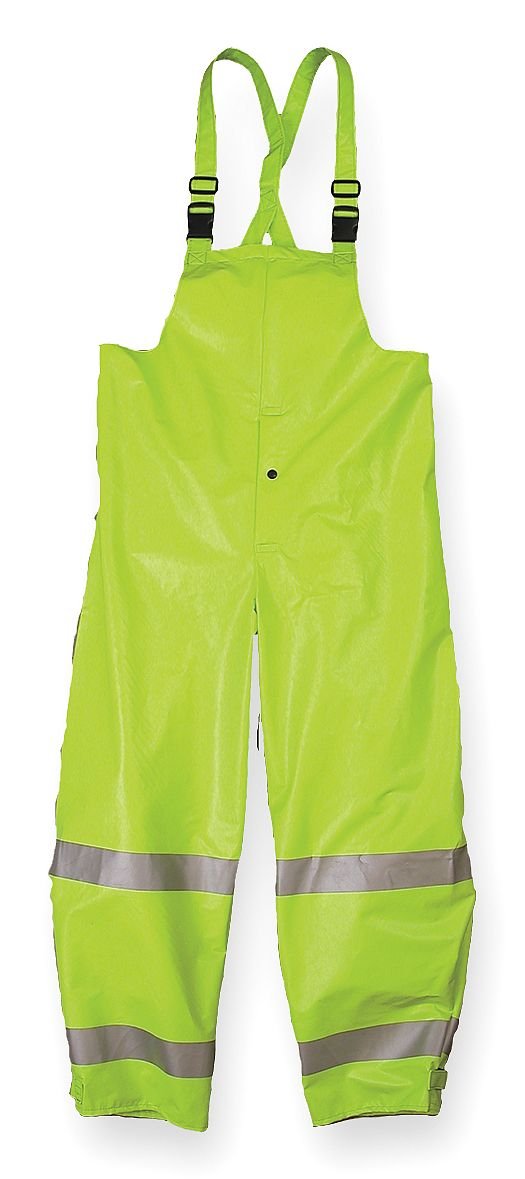 Bib Overalls Snap-fly front, quick-release suspender system, and adjustable hook-and-loop closure leg cuffs. Arc- and Flame-Resistant Rainwear Features 3M 2 high-visibility reflective trim and welded seams. Meet ANSI 107 Class E Level 2 standard This listing is for each. Technical Specification Rainwear Style Arc Flash Rain Bib Overall Arc Flash PPE Category 1 ATPV Rating 7 cal./cm2 High Visibility Yes Rainwear Primary Material Kevlar(R), Nomex(R) PVC Rainwear Size S Rainwear Color Yellow/Green Rainwear Features Wind Resistant Rainwear ANSI Class Class E Fits Waist Size 32 to 34 Gender Men's Liner Material PVC Material PVC/Nomex(R)/Kevlar(R) Seam Style Sealed Thickness 17 mil Fabric Weight 8 oz. Inseam 30 Number of Pockets (Inside) 0 Number of Pockets (Outside) 0 Rainwear Closure Type Snaps, Storm Flap Rainwear Ankle Style Hook-and-Loop Includes Reflective Striping Standards ASTM D6413, F1891-12