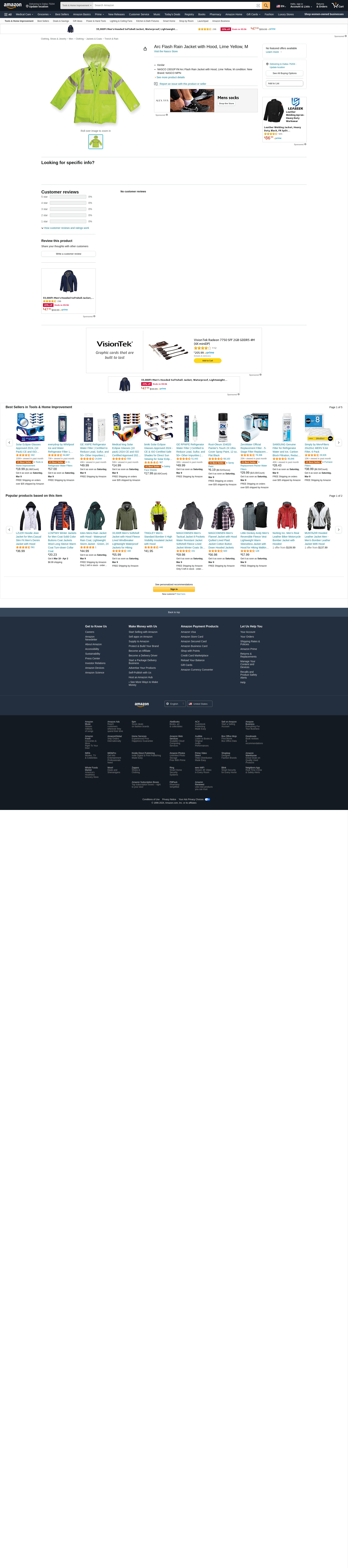 - NASCO 1503JFYM Arc Flash Rain Jacket with Hood, Lime Yellow, M condition: New Brand: NASCO MPN: