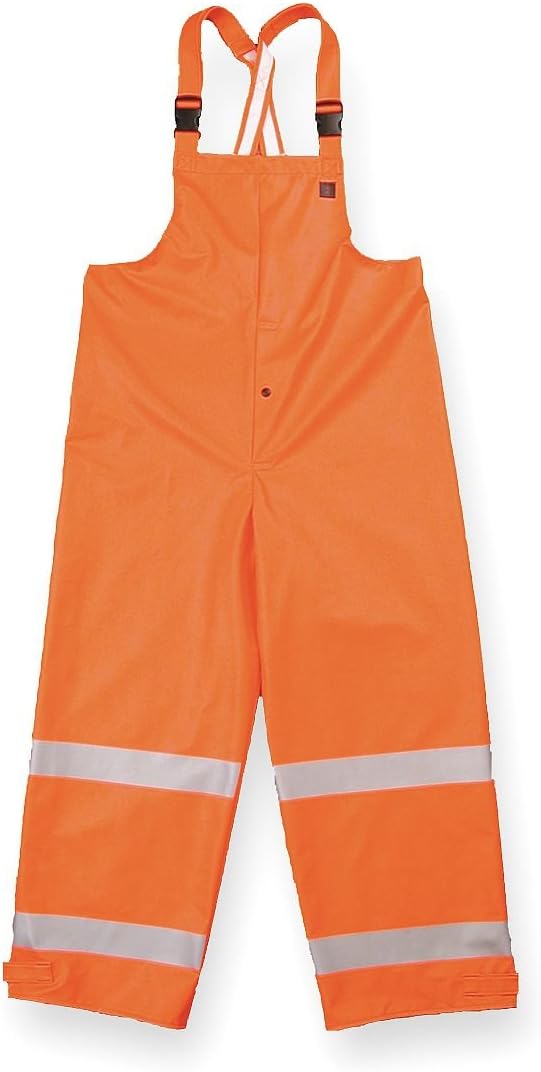 Arc Flash Rain Overall, Cat 2, Orange, S This listing is for each. Technical Specification ANSI Class 3 ATPV Rating 16 cal/sq cm Ankle Type Open Arc Flash PPE Category 2 Color Orange Fabric Weight 10 oz Features Arc and Flame Resistance, Chemical Splash Resistance, Flash Fire Resistance, Flexible, Soft, Steam and Hot Water Protection, Waterproof High-Visibility Yes Includes Belt Loops No Includes Lining Yes Inseam 29 in Item Arc Flash Rain Bib Overall Lining Material Polyurethane Material Cotton, Cotton Material Coating FR Polyurethane Maximum Waist Size 34 in Minimum Waist Size 32 in Number of Inside Pockets 0 Number of Outside Pockets 0 Pass Through Pockets 0 Protection Type High-Visibility Seam Style Dielectrically Welded Size S Standards ANSI 107, ASTM F1891, ASTM F2733, NFPA 70E Tag Size 32 to 34 x 29 Thickness 0.45 mm Total Number of Pockets 0 Waist Closure Snaps, Storm Flap Gender Men's