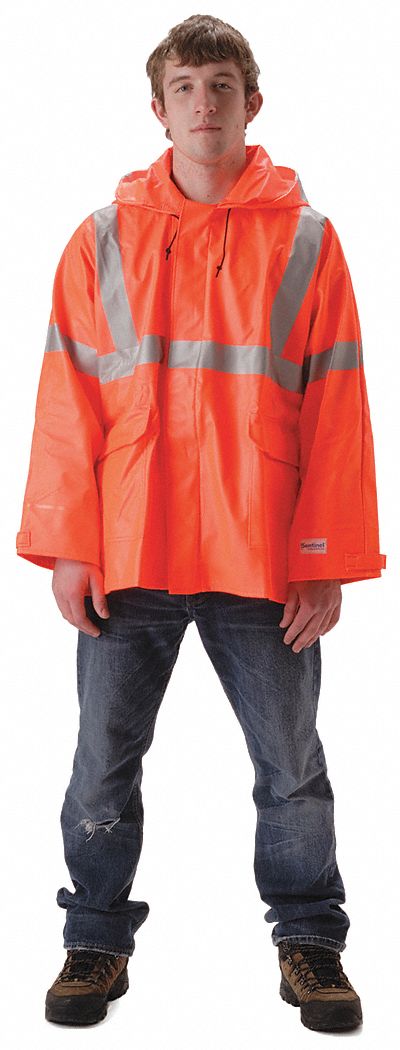 FR JACKET W HOOD, CSA, UNISEX, SZ 2XL/CHEST 52 TO 54 IN/30 IN L, FLUOR ORNG, FR COTTON/PU
