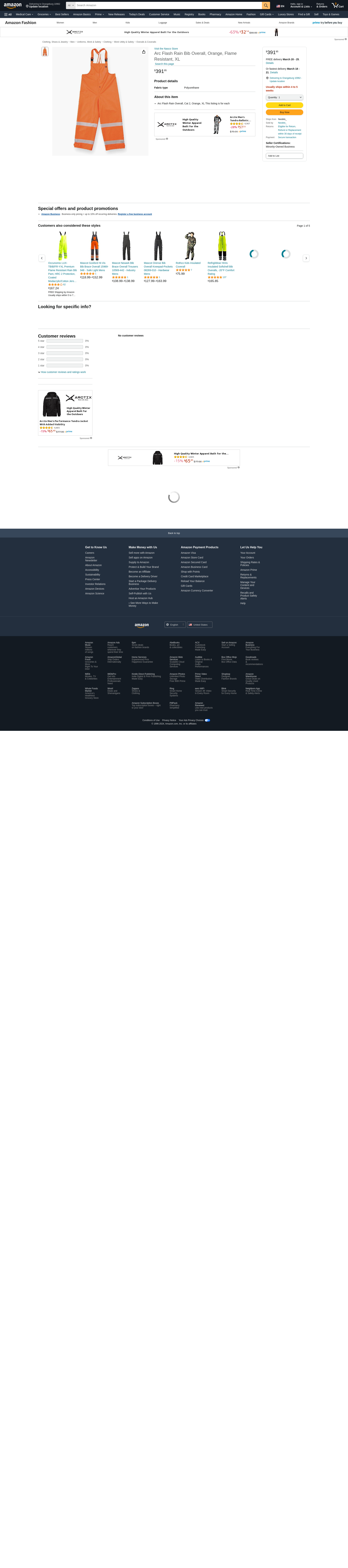 Arc Flash Rain Overall, Cat 2, Orange, XL This listing is for each. Technical Specification ANSI Class 3 ATPV Rating 16 cal/sq cm Ankle Type Open Arc Flash PPE Category 2 Color Orange Fabric Weight 10 oz Features Arc and Flame Resistance, Chemical Splash Resistance, Flash Fire Resistance, Flexible, Soft, Steam and Hot Water Protection, Waterproof High-Visibility Yes Includes Belt Loops No Includes Lining Yes Inseam 29 in Item Arc Flash Rain Bib Overall Lining Material Polyurethane Material Cotton, Cotton Material Coating FR Polyurethane Maximum Waist Size 46 in Minimum Waist Size 44 in Number of Inside Pockets 0 Number of Outside Pockets 0 Pass Through Pockets 0 Protection Type High-Visibility Seam Style Dielectrically Welded Size XL Standards ANSI 107, ASTM F1891, ASTM F2733, NFPA 70E Tag Size 44 to 46 x 29 Thickness 0.45 mm Total Number of Pockets 0 Waist Closure Snaps, Storm Flap Gender Men's