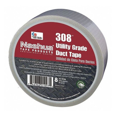 Nashua 308 Polyethylene Coated Cloth Utility Grade 1087719 Duct Tape, 8 mil Thick, 55 m Length, 48 mm Width, Silver