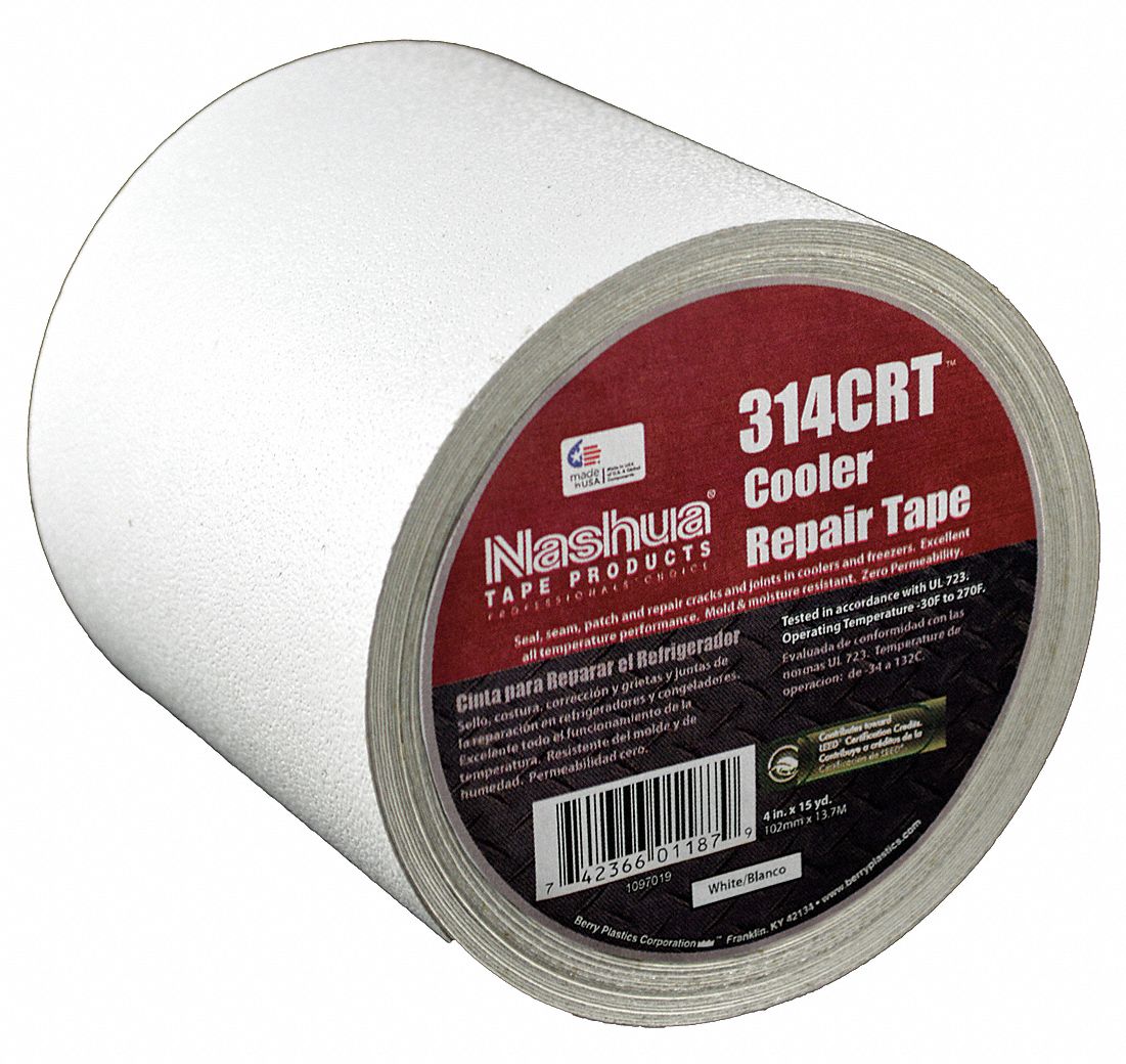 - Price For: Each Shape: Continuous Roll Length: 15 yd. Item: Foil Tape Diameter: 4-1/8" Color: White Performance Temp.: -30 Degrees to 270 Degrees F Adhesion Strength: 100 oz./in. Standards: Tested in accordance with UL 723 Thickness: 10.00 mil Tensile Strength: 43 lb./in. Adhesive: Acrylic Width: 4" Material: Embossed Foil Laminate