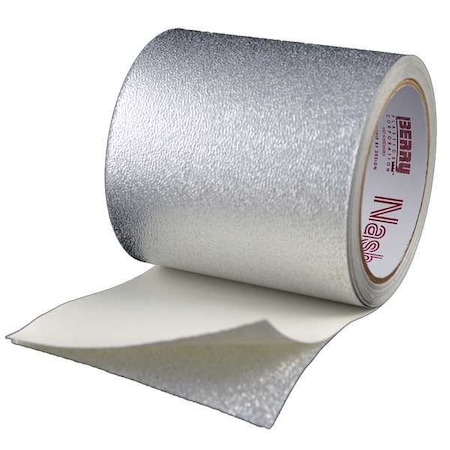 ' Foil Tape, Material Embossed Foil Laminate, White, Shape Continuous Roll, Width 4 In., Length 15 yd., Diameter 4-1/8 In., Thickness 10.00 mil, Tensile Strength 43 lb./in., Adhesion Strength 100 oz./in., Acrylic Adhesive, Performance Temp. -30 Degrees to 270 Degrees F, Standards Tested in accordance with UL 723 '
