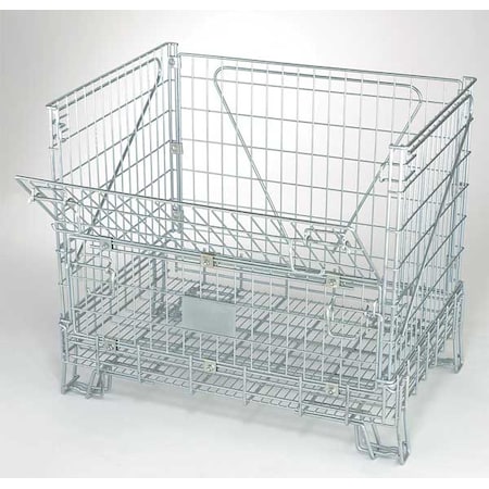 - <b>Price For:</b> Each <b>Outside Length</b>: 32" <b>Material</b>: Steel Wire Mesh <b>Outside Height</b>: 39" <b>Item</b>: Collapsible Bulk Container <b>Outside Width</b>: 42" <b>Folded Length</b>: 32-3/4" <b>Gauge</b>: 11 <b>Folded Width</b>: 43-3/4" <b>Finish</b>: Zinc Electroplate <b>Folded Height</b>: 12" <b>Color</b>: Silver <b>Inside Height</b>: 33" <b>Inside Length</b>: 31" <b>Bulk Container Item</b>: Collapsible Bulk Container <b>Inside Width</b>: 41"