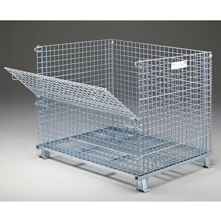 These wire containers are collapsible to set up in seconds and fold flat to save space and reduce return shipping costs. Open wire mesh provides excellent visibility for easy inventory control. Wire storage containers help eliminate dust and dirt build up. Notched, positive stacking legs permit handling by forklift or pallet truck. Drop gate allows access to contents, even when stacked. Corrosion resistant zinc-plated finish., Lot of 1