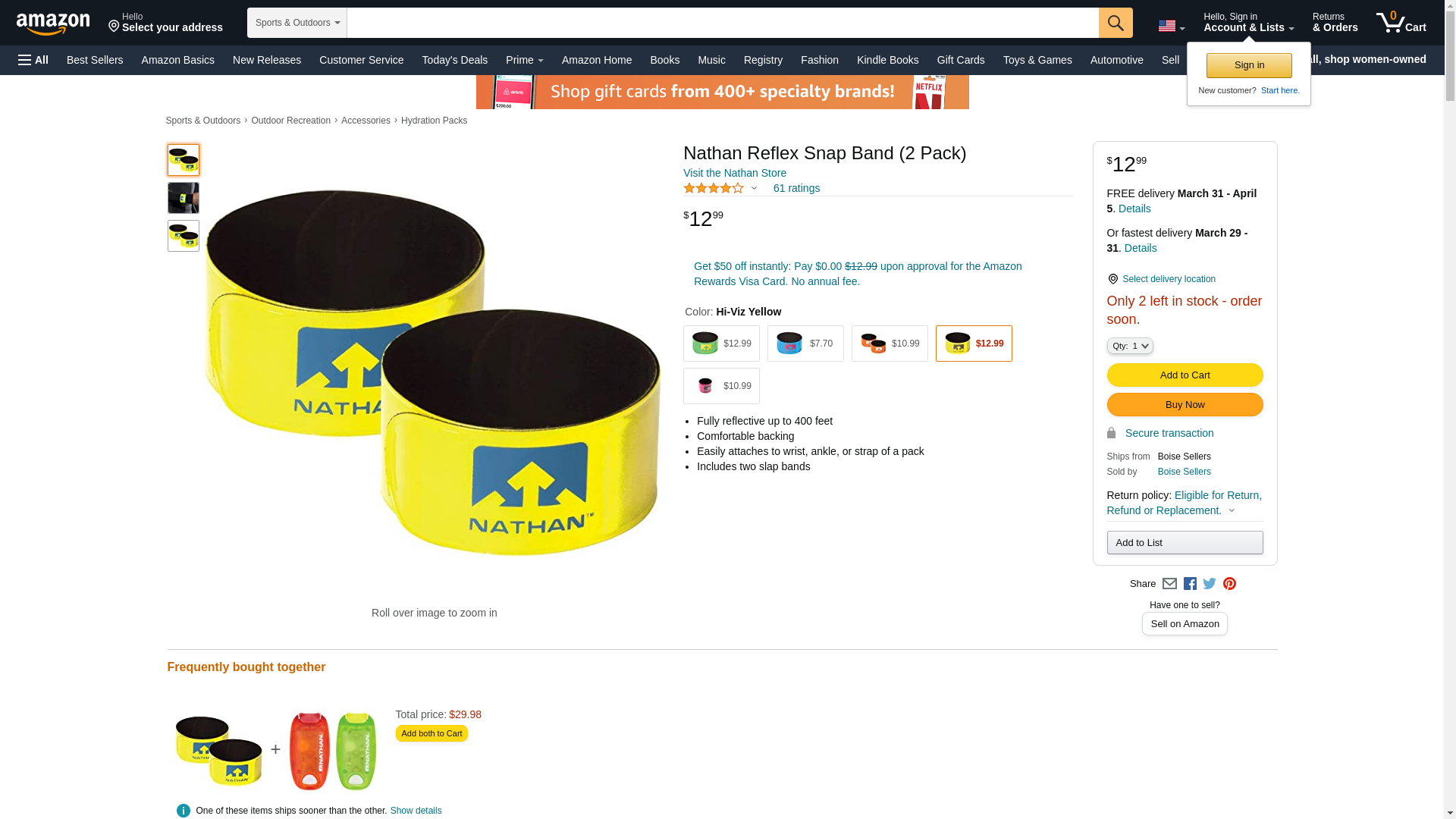 <p>nathan reflex snap bands provide reflective visibility up to 400 feet. Use on wrists, legs, pack strap, and other locations. -fully reflective up to 400 feet -comfortable backing -easily attaches to wrist, ankle, strap of a pack, or use your imagination. -sold as a pair</p>