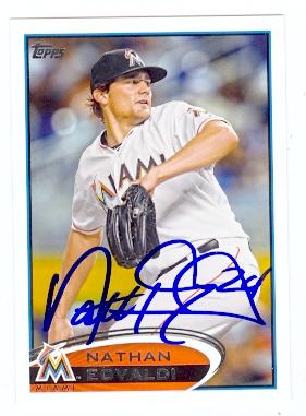 Nathan Eovaldi autographed baseball card (Miami Marlins) 2012 Topps No.US33