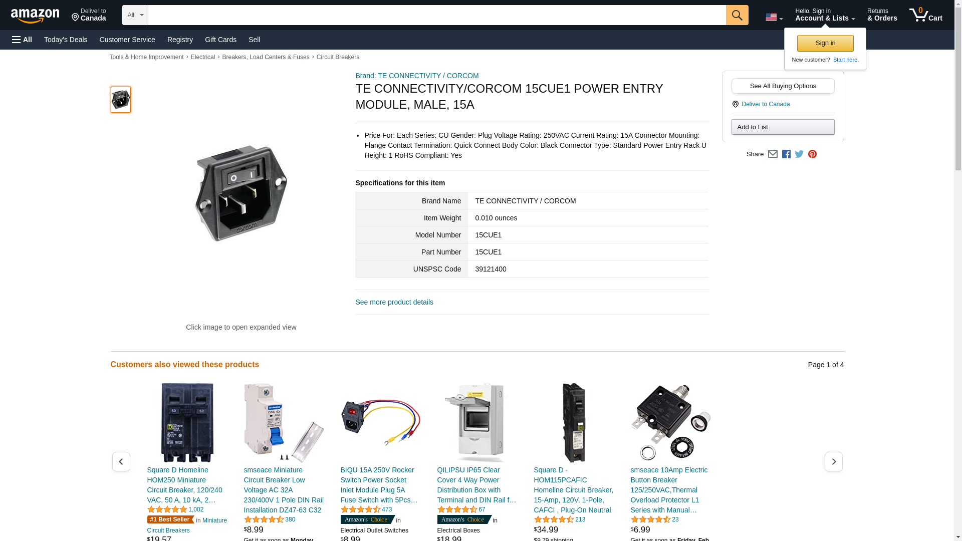 TE Connectivity - 15CUE1 - Power Entry Module, 15A, 120VAC, Unfiltered, Panel Mount, Switched, CU Series - RS