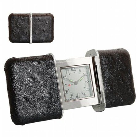 Natico Slide Design Travel Alarm Clock in Black Leather (10-101BK)