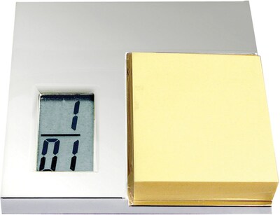 Natico LCD Desk Alarm Clock With Notepad, Silver | Quill.com