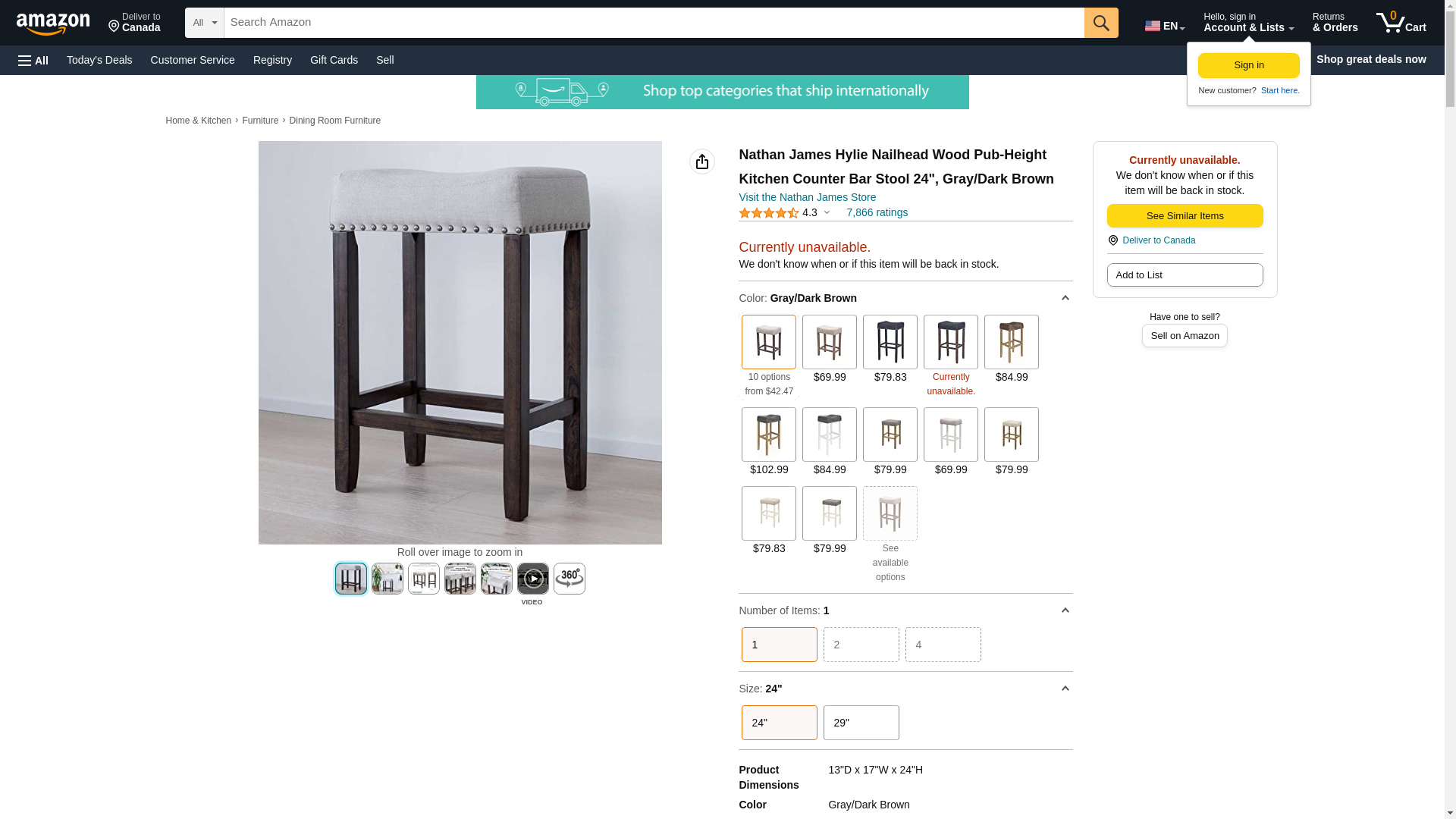 Nathan James 21302 Hylie Nailhead Wood Pub-Height Kitchen Counter Bar Stool 24", Gray/Dark Brown