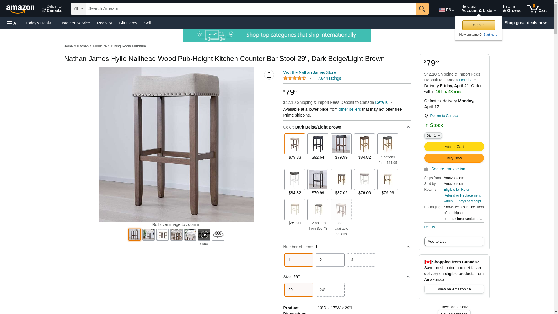 Nathan James Hylie Nailhead Wood Pub-Height Kitchen Counter Bar Stool 29", Dark Beige/Light Brown