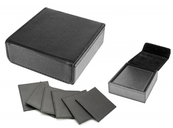 6-Piece Faux Leather Coaster Set in Magnetic Black Case