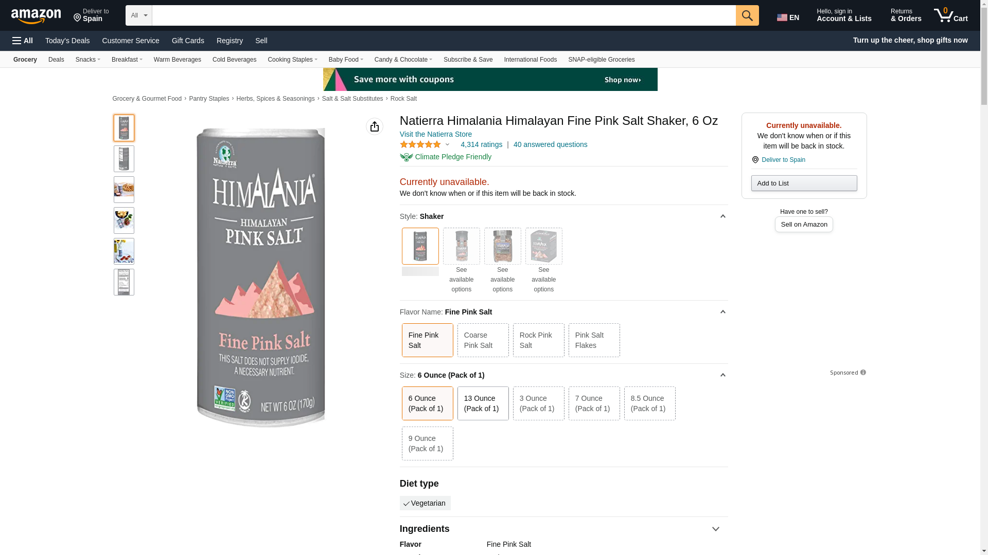 NATIERRA Himalania Himalayan Fine Pink Salt Shaker | Unrefined & Non-GMO | 6 Ounce: Maxedbuy.com