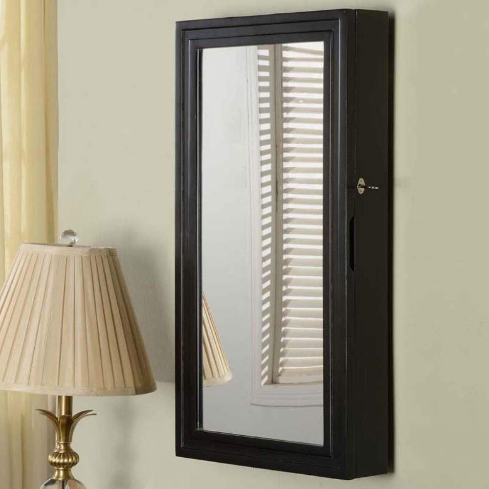 - Minimalist and Simplistic, the Mirrored Jewelry Armoire is Chic and Sophisticated. Arriving with a Lock and Key, the Armoire is the Ideal Place to Store Your Treasures.