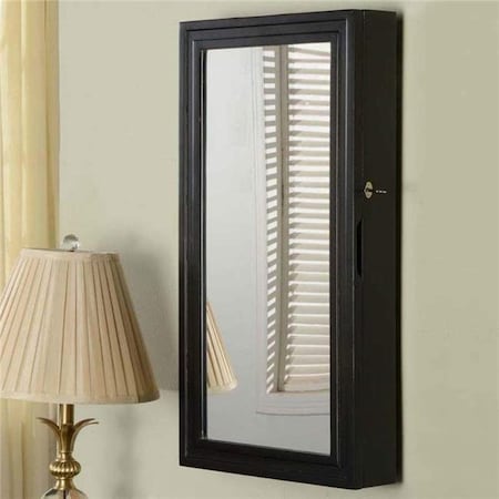 Nathan Direct Laney Lockable Wall-Mount Jewelry Armoire with Ring Holders, Earring Hooks, Necklace Hooks, and Compartments, Black