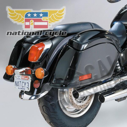 CRUISELINR SADLEBG,SMOOTH BACK Hard bags, though practical, need to look good on your cruiser. National Cycle achieves a tight fit with good looks in the styling of Cruiseliner saddlebags. Easy-to-use, quarter-turn fasteners for no-tool removal of the saddlebags from the frame. Permanently attached lids are hinged in the front and swing forward for easy access to the interior. 1-1/4 in. tight-fitting seals conform to the shape of the lid to keep the elements out. A keyed push-button lock is recessed into the lid. . National Cycle saddlebags are custom engineered for each motorcycle to exact specifications and are guaranteed to fit. Cruiseliners are painted gloss black and ready to mount or custom paint. For cruisers with no turn signal interference: Smooth Back Saddlebags. With recessed pockets for stock turn signals: Pocket Back Saddlebags. Bags and mount kits sold separately.