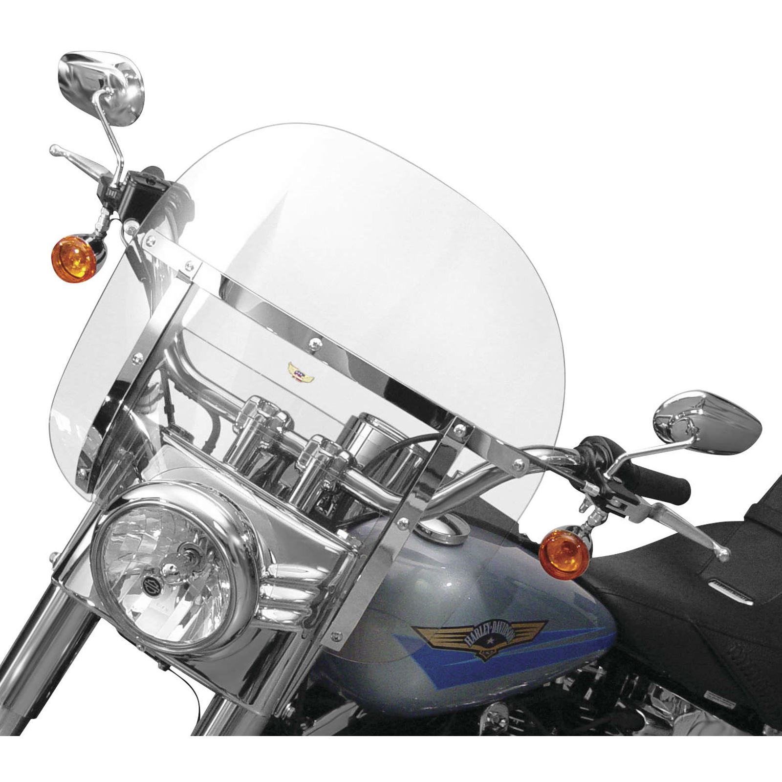 Low profile screen with wide proportion<br>Superior scratch-resistant, Quantum coated Lexan polycarbonate<br>High-luster chrome outside strapping<br>H: 14.3-15.8in. (36.2-40.0cm)<br>W: 21.5in. (54.6cm)<br><br>This Item Fits the Following Applications:<br>2011 Harley Davidson FLSTFB Fat Boy Lo<br>2011 Harley Davidson FLSTF Fat Boy<br>2011 Harley Davidson FLSTC Heritage Softail Classic<br>2010 Harley Davidson FXSTC Softail Custom<br>2010 Harley Davidson FLSTFB Fat Boy Lo<br>2010 Harley Davidson FLSTF Fat Boy<br>2010 Harley Davidson FLSTC Heritage Softail Classic<br>2009 Kawasaki VN2000E Vulcan 2000 Classic<br>2009 Harley Davidson FXSTC Softail Custom<br>2009 Harley Davidson FXSTB Night Train<br>2009 Harley Davidson FLSTF Fat Boy<br>2009 Harley Davidson FLSTC Heritage Softail Classic<br>2008 Kawasaki VN2000E Vulcan 2000 Classic<br>2008 Harley Davidson FXSTC Softail Custom<br>2008 Harley Davidson FXSTB Night Train<br>2008 Harley Davidson FLSTF Fat Boy<br>2008 Harley Davidson FLSTC Heritage Softail Classic<br>2007 Yamaha XVS650A V Star Classic<br>2007 Yamaha XVS650 V Star Custom<br>2007 Yamaha XVS1100A V Star 1100 Classic<br>2007 Yamaha XVS1100 V Star 1100 Custom<br>2007 Kawasaki VN2000E Vulcan 2000 Classic<br>2007 Honda VT750DC Shadow Spirit<br>2007 Honda VT600CD Shadow VLX Deluxe<br>2007 Honda VT600C Shadow VLX<br>2007 Honda VT1100C Shadow Spirit<br>2007 Harley Davidson FXSTD Softail Duce<br>2007 Harley Davidson FXSTC Softail Custom<br>2007 Harley Davidson FXSTB Night Train<br>2007 Harley Davidson FXST Softail Standard<br>2007 Harley Davidson FLSTF Fat Boy<br>2007 Harley Davidson FLSTC Heritage Softail Classic<br>2006 Yamaha XVS650A V Star Classic<br>2006 Yamaha XVS650 V Star Custom<br>2006 Yamaha XVS1100A V Star 1100 Classic<br>2006 Yamaha XVS1100 V Star 1100 Custom<br>2006 Kawasaki VN900B Vulcan 900 Classic<br>2006 Kawasaki VN800E Vulcan 800 Drifter<br>2006 Kawasaki VN2000E Vulcan 2000 Classic<br>2006 Honda VTX1300S<br>2