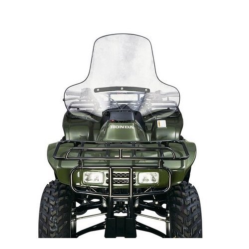 N2573-01 ATV WINDSHIELD Riding in extreme environments, you need this generous 32" width. Made from Lexan polycarbonate. Includes a protective rubber trim edge. Features black epoxy powder-coated steel mount brackets. P/N 553574:. Height: 20" (51 cm) from headlight cutout to top; width: 32" (81 cm). P/N 553575:. For high headlights such as Honda Foreman. Height: 16" (40-1/2 cm) from headlight cutout to top; width: 32" (81 cm).