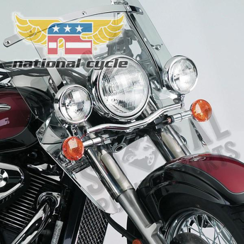 <LI>Clamp Mount</LI><LI>Chrome-Plated</LI><LI>Includes Spot Lights and Wiring</LI><LI>Reuse OEM Turn Signals</LI><LI>Note: For National Cycle Windshields Only</LI><BR></BR>Fits the Following Suzuki Models:<LI>BOULEVARD C50 2005-2007</LI><LI>VL800 INTRUDER VOLUSIA 2001-2004</LI><BR></BR><LI><B>Please Note: The Image Displayed Is Representative of National Cycle Lightbars, but Actual Shape May Vary Depending on Your Specific Application.</B></LI>