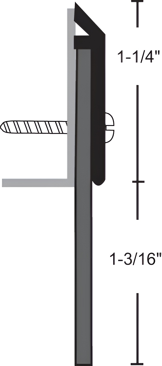 - <b>Price For:</b> Each <b>Insert Color</b>: Black <b>Insert Size</b>: 1-3/16" <b>Insert Material</b>: Neoprene <b>Flange Height</b>: 1-1/4" <b>Length</b>: 3 ft. <b>Door Sweep Type</b>: Single Fin <b>Projection</b>: 3/16" <b>Includes</b>: #6 x 3/4" Stainless Steel Sheet Metal Screws <b>Flange Material</b>: Anodized Aluminum <b>Item</b>: Door Sweep <b>Standards</b>: ANSI/UL10C (Category H), CAN4/ULC-S104, ANSI/UL10B, ANSI/UL1784, ANSI/BHMA A156.22