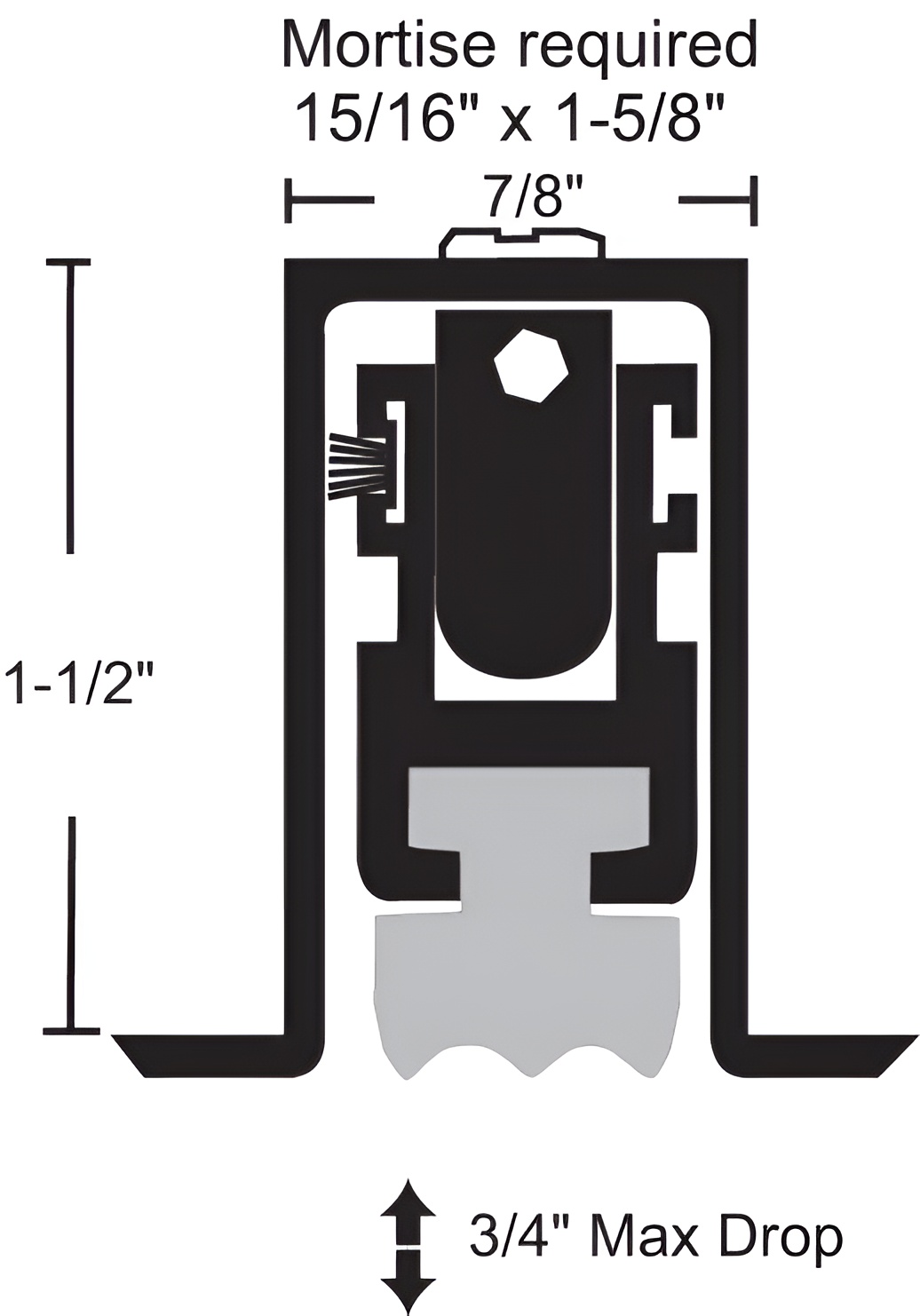 - <b>Flange Finish</b>: Mill <b>Item</b>: Door Bottom <b>Overall Length</b>: 48" <b>Housing Thickness</b>: 1/16" <b>Drop Bar Material</b>: Aluminum <b>Insert Color</b>: Black <b>For Use With</b>: Doors <b>Country of Origin (subject to change)</b>: United States