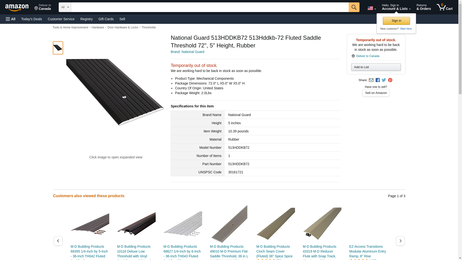 National Guard 513HDDKB72 513Hddkb-72 Fluted Saddle Threshold 72", 5" Height, Rubber