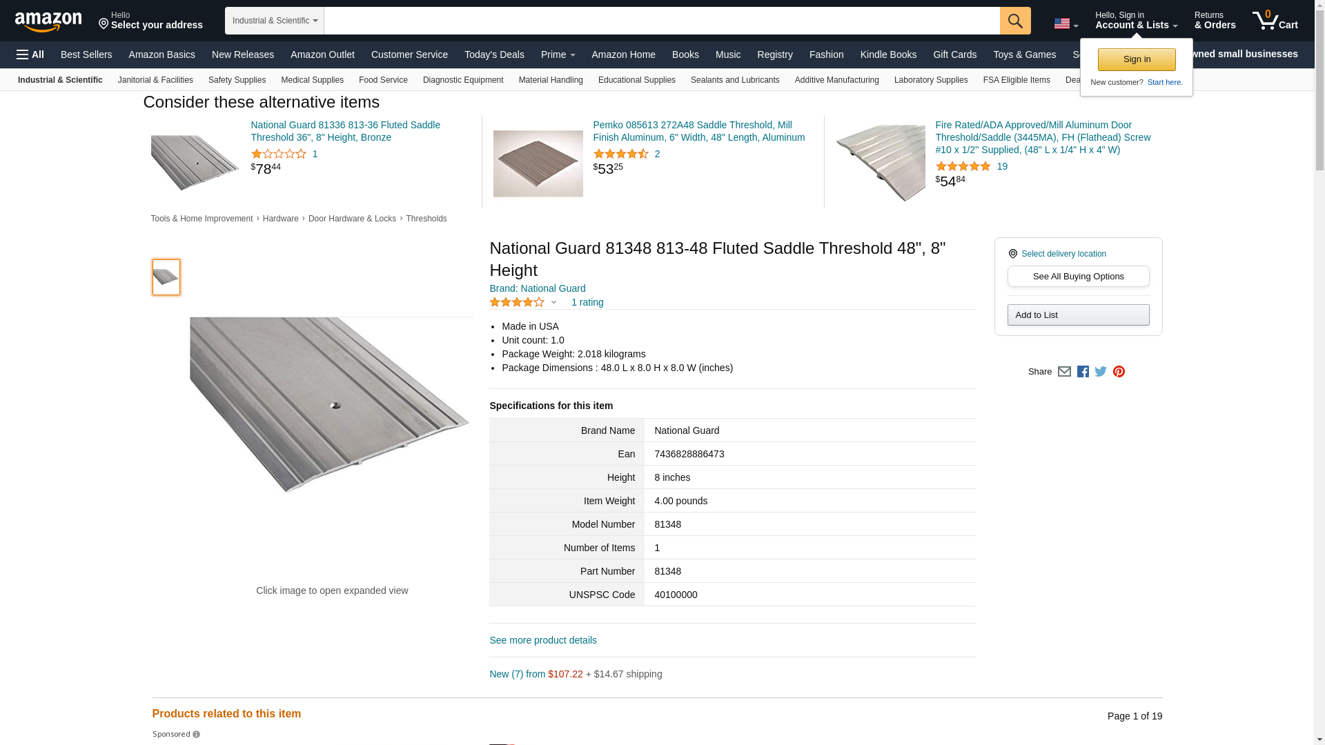 National Guard 81348 813-48 Fluted Saddle Threshold 48", 8" Height