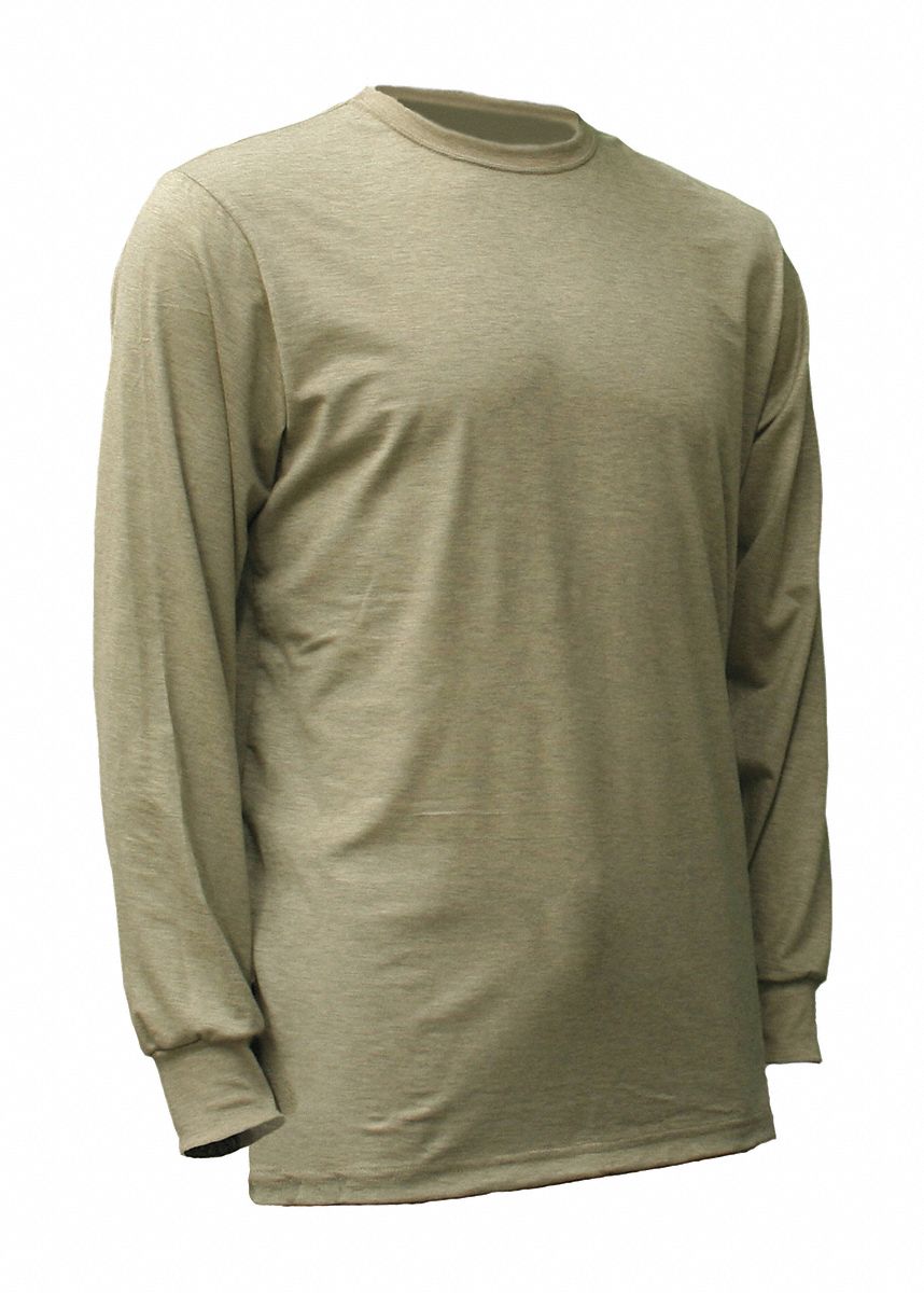National Safety Apparel C54DKLSNPLG FR Performance Wear Long Sleeve T-Shirt, Large, Khaki