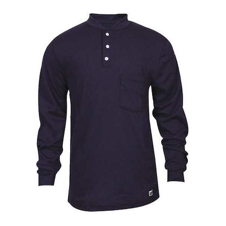 National Safety Apparel C54PIBSLSMD FR Classic Cotton Long Sleeve Henley, 100% FR Cotton, Medium, Navy