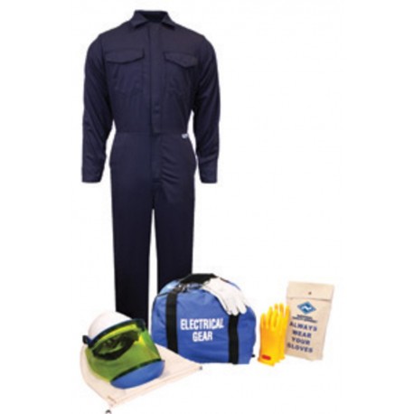 - Kit Includes: FR UltraSoft Coverall; Hard Hat with Face shield & Chin Cup; Safety Glasses; Class "0" Voltage Rated Gloves; Leather Glove Protectors