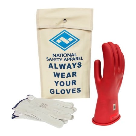 National Safety Apparel Class 0 Red Rubber Voltage Insulating Glove Kit with Leather Protectors, Max. Use Voltage 1,000V AC/ 1,500V DC (KITGC011R)