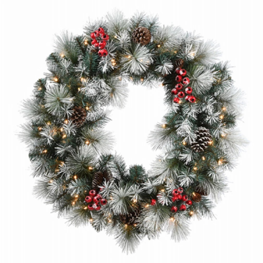 National Tree 266740 24 in. Snowy Glacier Pine Artificial Wreath, Warm White