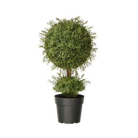 30" Artificial Two-Tone Green Mini Tea Leaf Ball Topiary in Round Pot