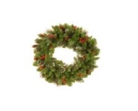 National Tree 24 Inch Crestwood Spruce Wreath with Cones, Glitter, Red Berries and Silver Bristle (CW7-10-24W-1)