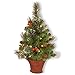National Tree Company Pre-Lit Artificial Mini Christmas Tree, Green, Crestwood Spruce, White Lights, Decorated with Pine Cones, Berry Clusters, Frosted Branches, Includes Wicker Base, 3 Feet