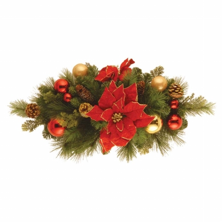 | Feature | Trimmed with ball ornaments, pine cones and red poinsettia flower |