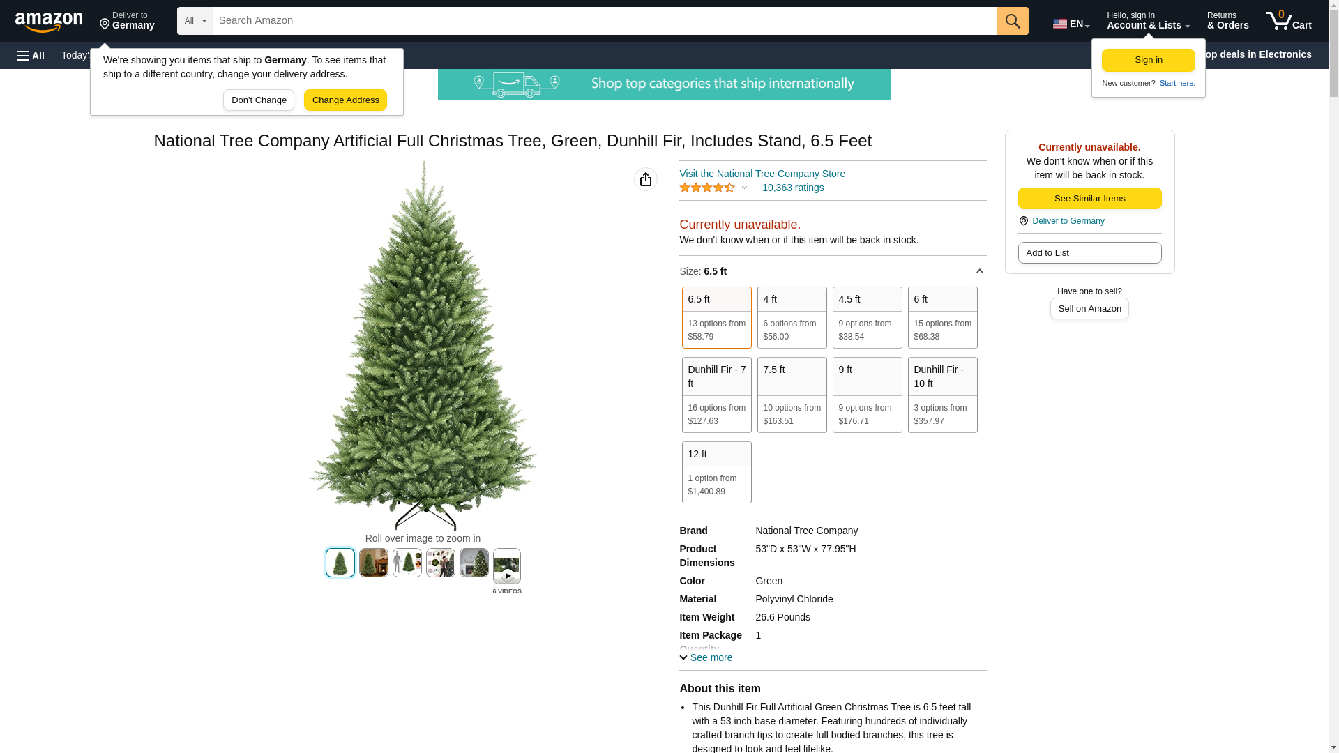 National Tree Company Artificial Full Christmas Tree, Green, Dunhill Fir, Includes Stand, 6.5 Feet
