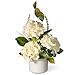 - Includes one Artificial Potted Flowers that measures 9 inches in height, includes a stylish, white ceramic pot base and is potted with hydrangea blooms, seed pods and leafy greens.