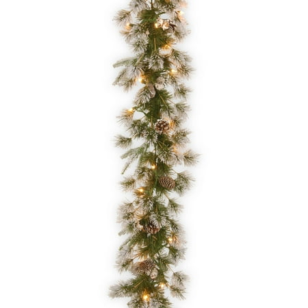 National Tree 9 Foot by 10 Inch "Feel Real" Liberty Pine Garland with Pine Cones, Snow and 50 Clear Lights (PELB7-300-9A)