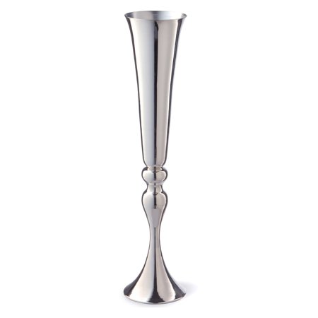 NTC3253 <br /> <strong>Features</strong> <br /> <li>Wedding collection</li> <li>Steel construction with chrome finish</li> <li>Wedding and special occasion decoration</li> <li>Material: Silver plated</li> <li>Product Type: Table vase</li> <li>Shape: Trumpet</li> <li>Color: Silver</li> <li>Primary Material: Metal</li> <li>Holiday Theme: Yes</li> <li>Holiday: Wedding</li> <br /> <strong>Dimensions</strong> <br />Size Large <br /> <li>Overall Height - Top to Bottom: 30''</li> <li>Overall Width - Side to Side: 7''</li> <li>Overall Depth - Front to Back: 7''</li> <li>Overall Product Weight: 2.15 lbs</li> <br />Size Small <br /> <li>Overall Height - Top to Bottom: 23''</li> <li>Overall Width - Side to Side: 5''</li> <li>Overall Depth - Front to Back: 5''</li> <li>Overall Product Weight: 1.85 lbs</li>
