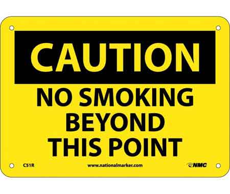 As an Amazon Associate, we earn from qualifying purchases. NMC C51R "Caution No Smoking Beyond This Point" Sign, 7" x 10" National-Marker-Company . C51R Gallery Attributes Brand name, Manufacturer name, ManufacturerNational-Marker-Company Attribute00No Smoking Sign Attribute01Rigid Plastic Attribute02, colorBlack on Yellow Attribute03Message Only Attribute04CAUTION - NO SMOKING BEYOND THIS POINT Attribute05English Attribute067 in Attribute0710 in Attribute080.05 in Attribute09+183 ?F Attribute10Mounting Holes Attribute11Indoor Attribute12Rectangle Attribute13OSHA 29 CFR 1910.216 Attribute141 per Each AttributeKey00Type AttributeKey01Material AttributeKey02Color AttributeKey03Message or Graphic AttributeKey04Message AttributeKey05Language AttributeKey06, height_AttribHeight AttributeKey07, width_AttribWidth AttributeKey08Thickness AttributeKey09Application Temperature Rating AttributeKey10Mounting Type AttributeKey11Special Features AttributeKey12Shape AttributeKey13Compliance/Standards AttributeKey14Package Quantity DimensionUnitinch KnownMan, Extra Product NameNMC C51R "Caution No Smoking Beyond This Point" Sign, 7" x 10" height7.0 moq, multiple, tierMinQty11 MPNC51R qtyInStockShips SKU20232RP710 snippetEnsure workers and visitors snuff cigarettes beyond permitted spaces with this National Marker Co. Buy National Marker Company and Save at Hantover.com tierPrice120.59 width10.0 Distributor offers SellerSKUMOQIn stockMultiplePrices hantover.com20232RP7101Ships11 @ $20.59